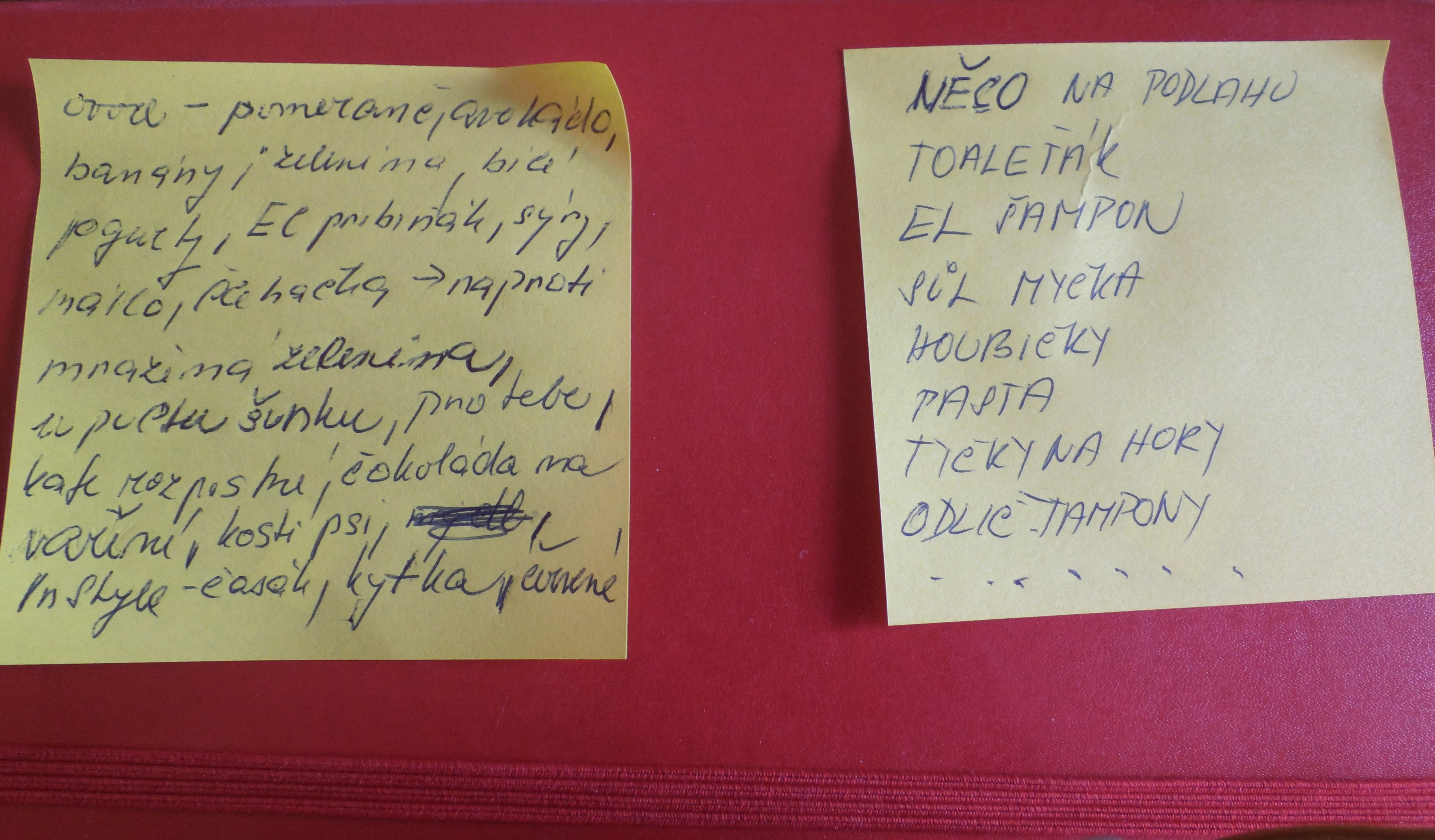 Vlastně dva. Jeden je pro mého muže do supermarketu, týká se hlavně jídla. Pěkně za sebou vypisuji nákupní položky, jak jdou regály v obchodě za sebou, aby nemusel zběsile jezdit sem a tam. Fotím a posílám. A to jsem se divila, proč tolik mužů při nakupování s vozíkem v ruce ještě sleduje mobil. Už vím. 😀