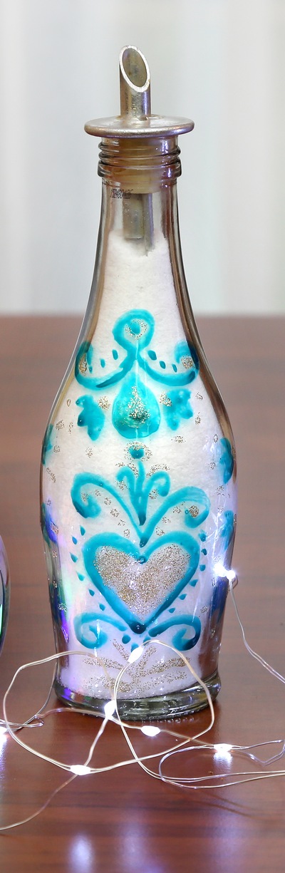 Zabere trochu více času, soustředění a námahy. Odměnou vám bude krásně barevná lahvička. A když do ní vložíte světýlka, vznikne další rozmilá lampička.