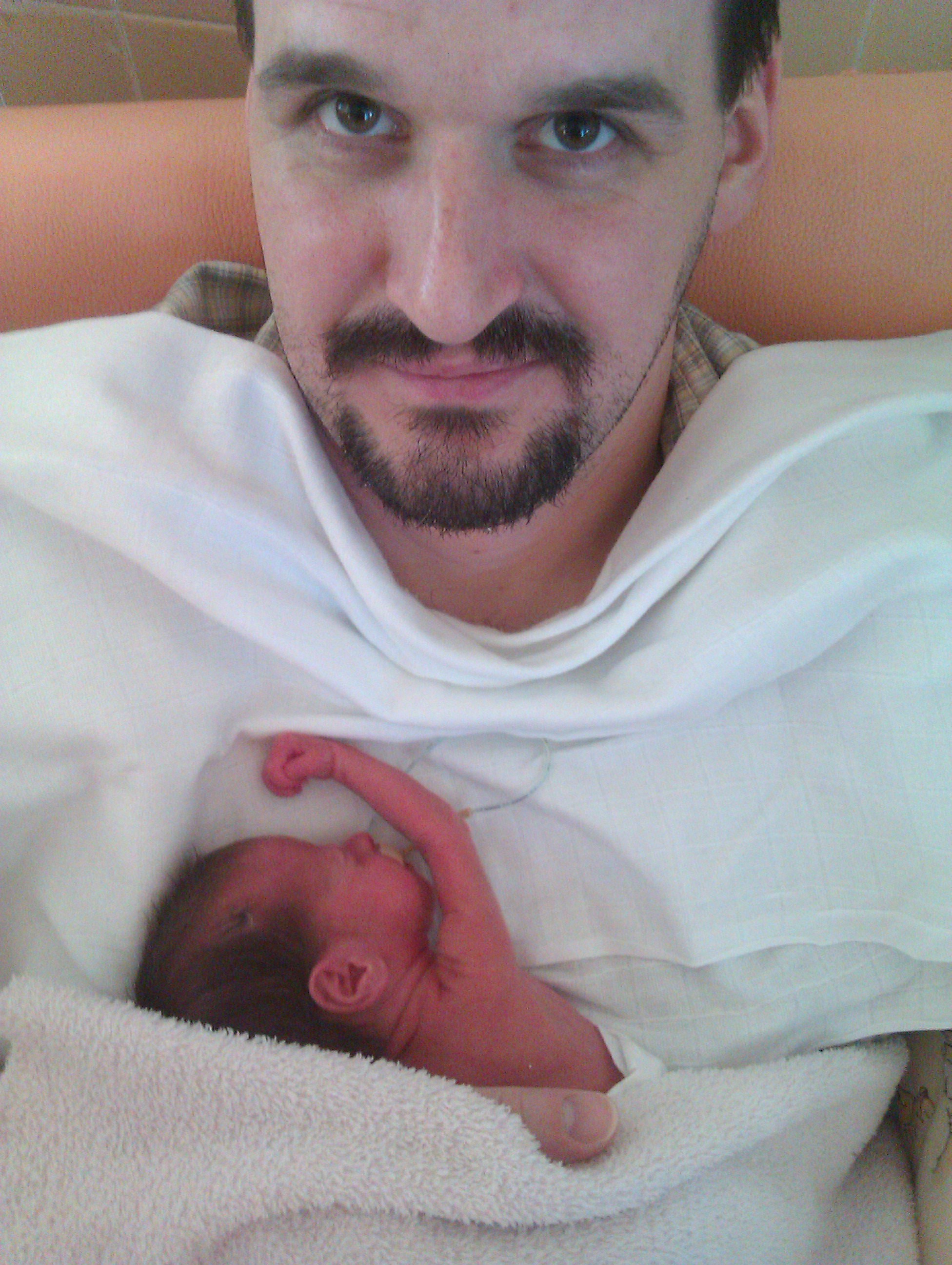 Klokánkování je u nedonošených dětí moc důležité. Na fotce s tatínkem