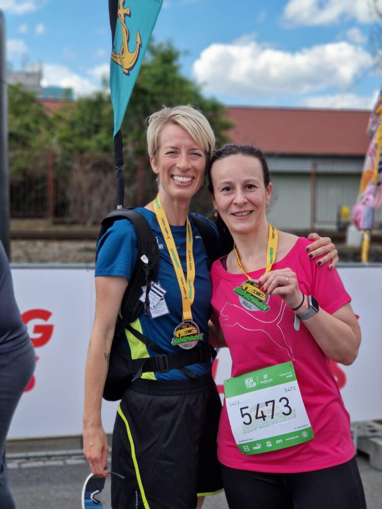 Běžela jsem opět 5 km, ale tentokráte jsem se rozhodla, že poběžím s vlajkonošem, tedy v mém případě s vlajkonožkou Petrou. Vlajkonoši jsou lidé, kteří běží s vlajkou, na které je čas a vy tak máte možnost běžet celou dobu plynule pod defakto dohledem a motivátorem. Já si zvolila klidné tempo, tj 5 km za 35 minut.