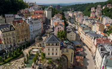 centrum Karlových Varů a galerie Na ochozu.
