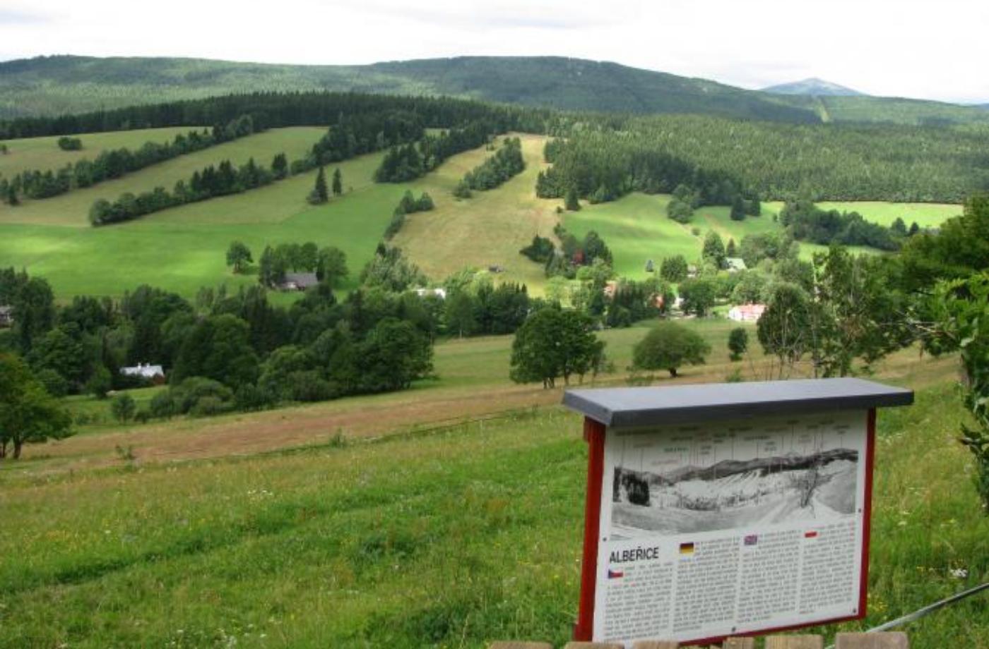 Na konci cesty stojí boží muka s kalichem a je odtud výhled na Sněžku a okolí. Při stoupání z Albeřic se vpravo v úvozu nachází bývalá cesta zničená vodou. Na místě bývalé celnice byl vystavěn hotel a restaurace. Kousek od ní se nachází Bischofův lom, jenž zásoboval vápencem i nedalekou vápenku u hlavní cesty, v níž je nyní Muzeum Vápenka.