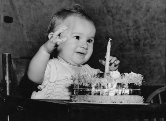 1949 Sfoukávání svíček o jeho prvních narozeninách.