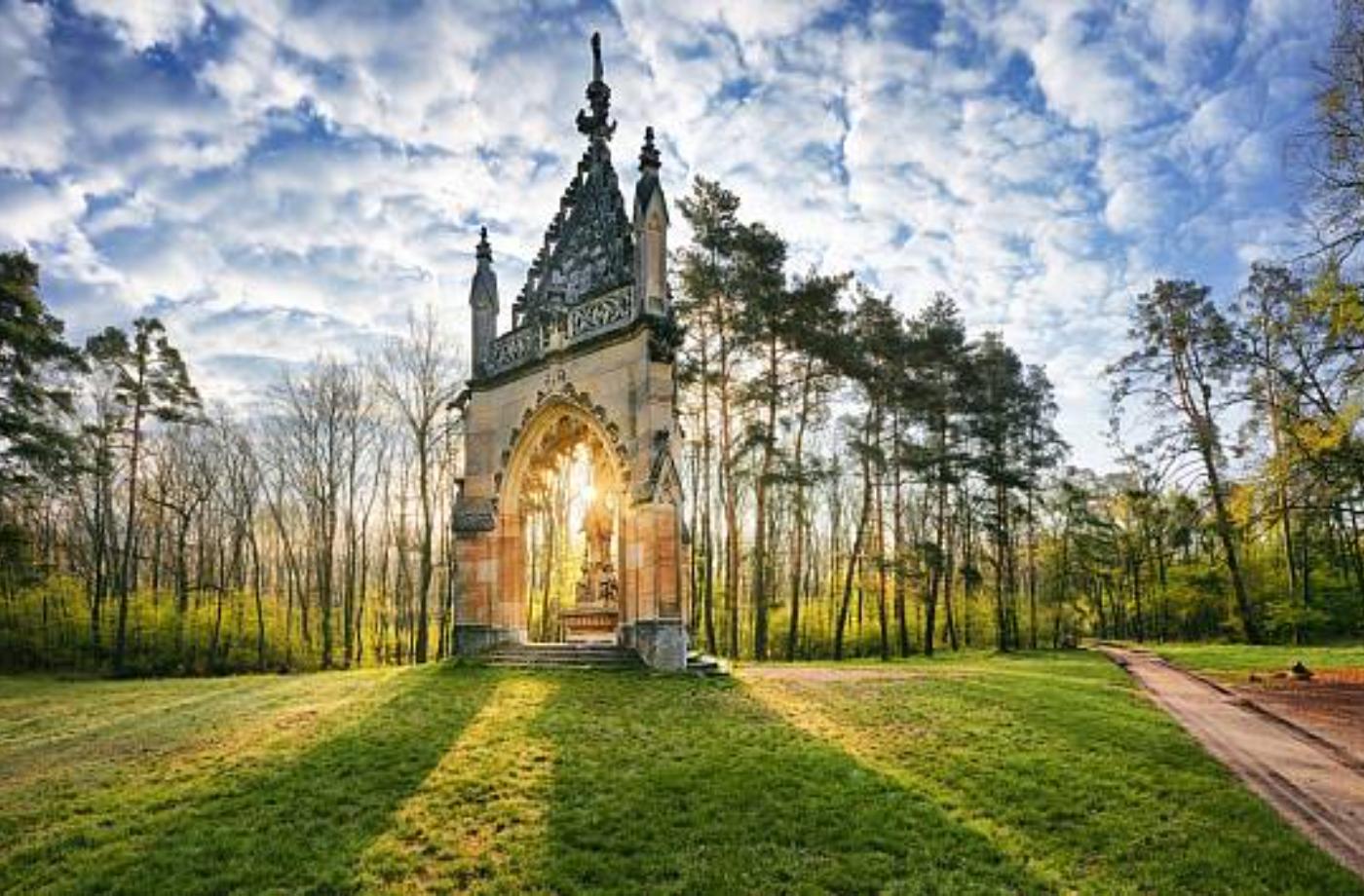 V samém srdci zahrady byl v letech 1666 až 1668 podle projektu Giovanniho Pietra Tencally vystavěn dle slov mecenáše celého díla olomouckého biskupa Karla II. z Lichtensteinu – Castelkorna (1664–1695) Lusthaus, jinak také osmiboký centrálně orientovaný pavilon – Rotunda.