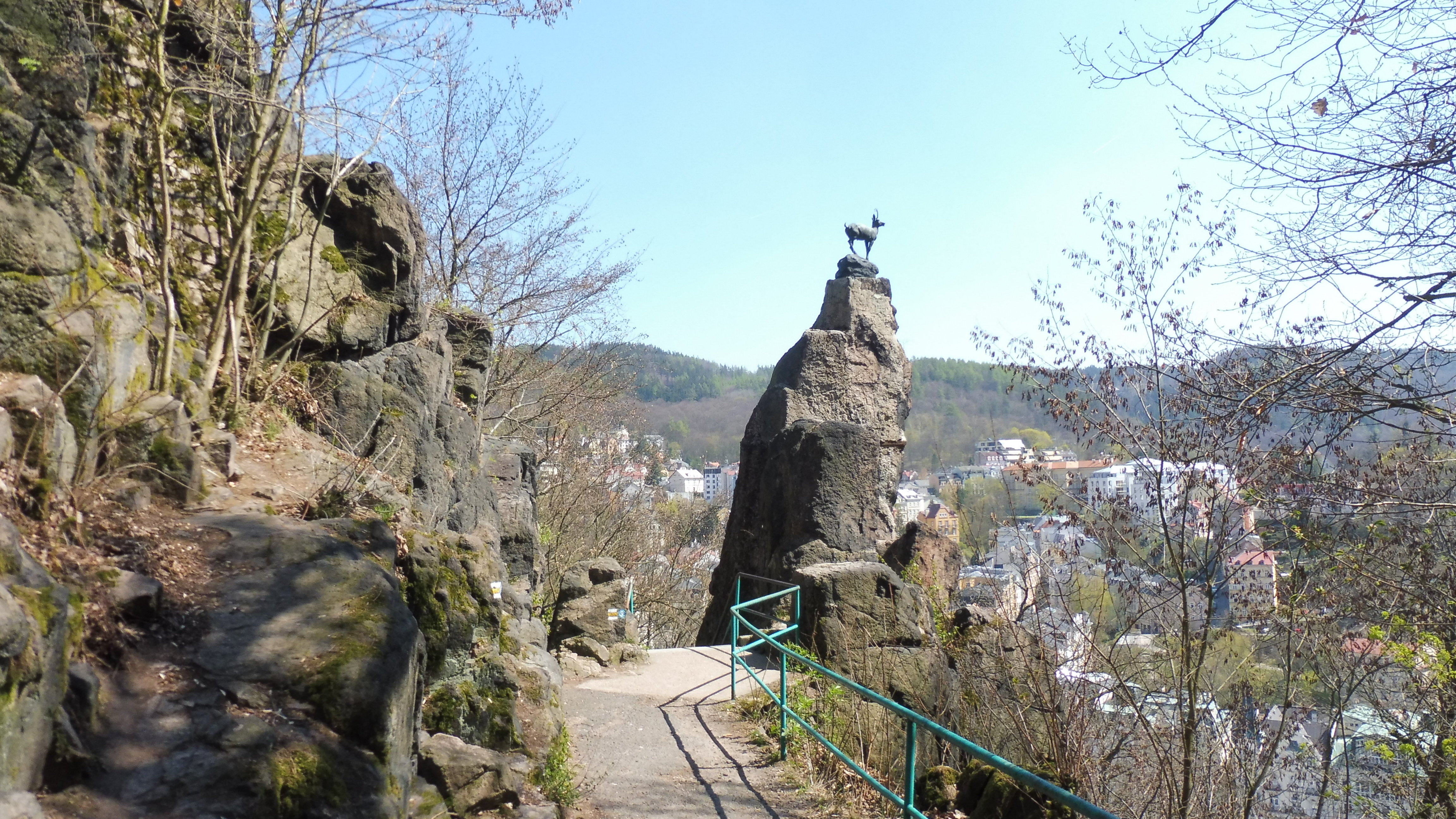 na skalním suku u Jeleního skoku přímo nad centrem Karlových Varů.