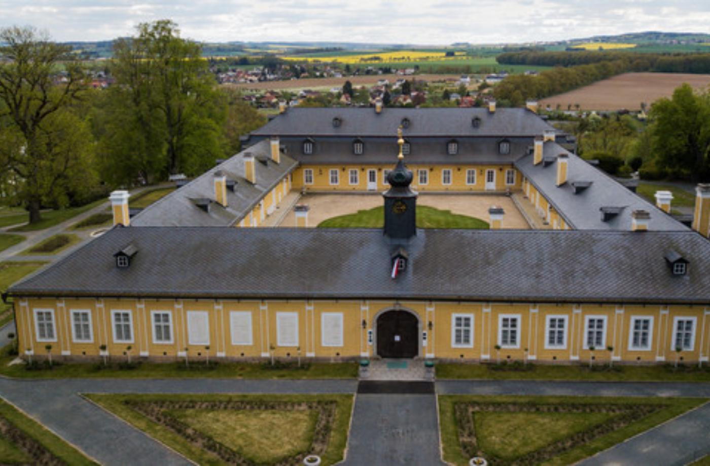 Stavbu zámku objednal Jan Vojtěch Černín, nejvyšší lovčí království českého. Zámek byl budován jako venkovské sídlo šlechty. Při prohlídce můžete obdivovat především původní mobiliář, který vytváří představu o zařízení loveckých zámků a letních sídel šlechty na přelomu 18. a 19. století. Divadlo bylo původně maštalí pro nejoblíbenější koně zakladatele zámku. V první polovině 19. století ji Valdštejn nechal přestavět pro zábavu svých dětí na zámecké divadlo, které dnes patří k nemnoha zachovaným divadlům té doby. Zámecká kaple dnes slouží jako koncertní a svatební sál. Je zde možné si objednat civilní i církevní svatbu.