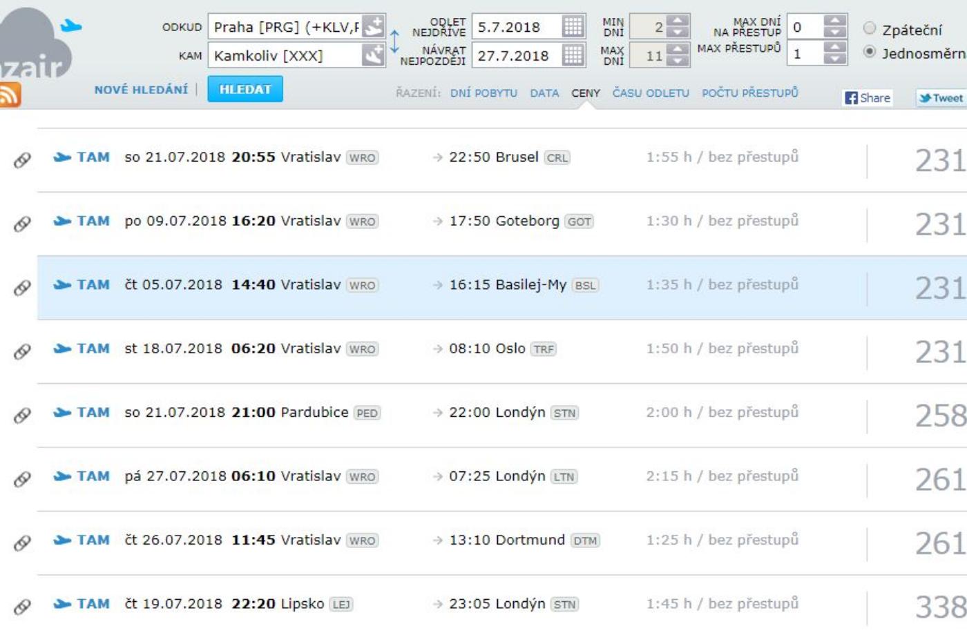 Tu stejnou trasu zadejte přímo do vyhledávače aerolinky a zkontrolujte si, jestli lety v jiné době nejsou ještě levnější. Někdy se to stává.