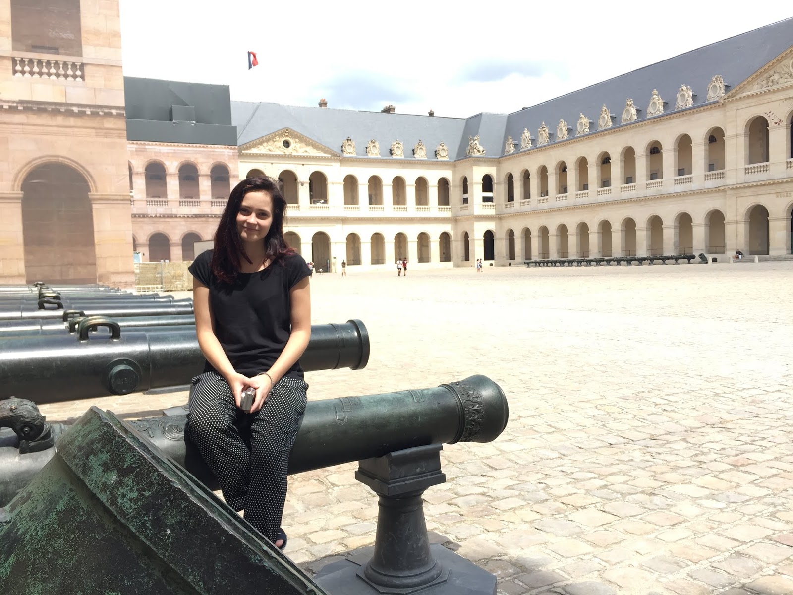 Naše cesta pokračovala dále a ocitli jsme se před Invalides. První, co mě na této budově upoutalo, byla zlatá kopule. Když na ni svítilo sluníčko, hned mi blikla do očí. Čím jsme přicházeli blíže, tím byla krásnější. Tato budova ukrývá Muzeum Armády, vojenskou nemocnici a domov pro “válečníky”. A jsou zde pochování váleční hrdinové z Francie.