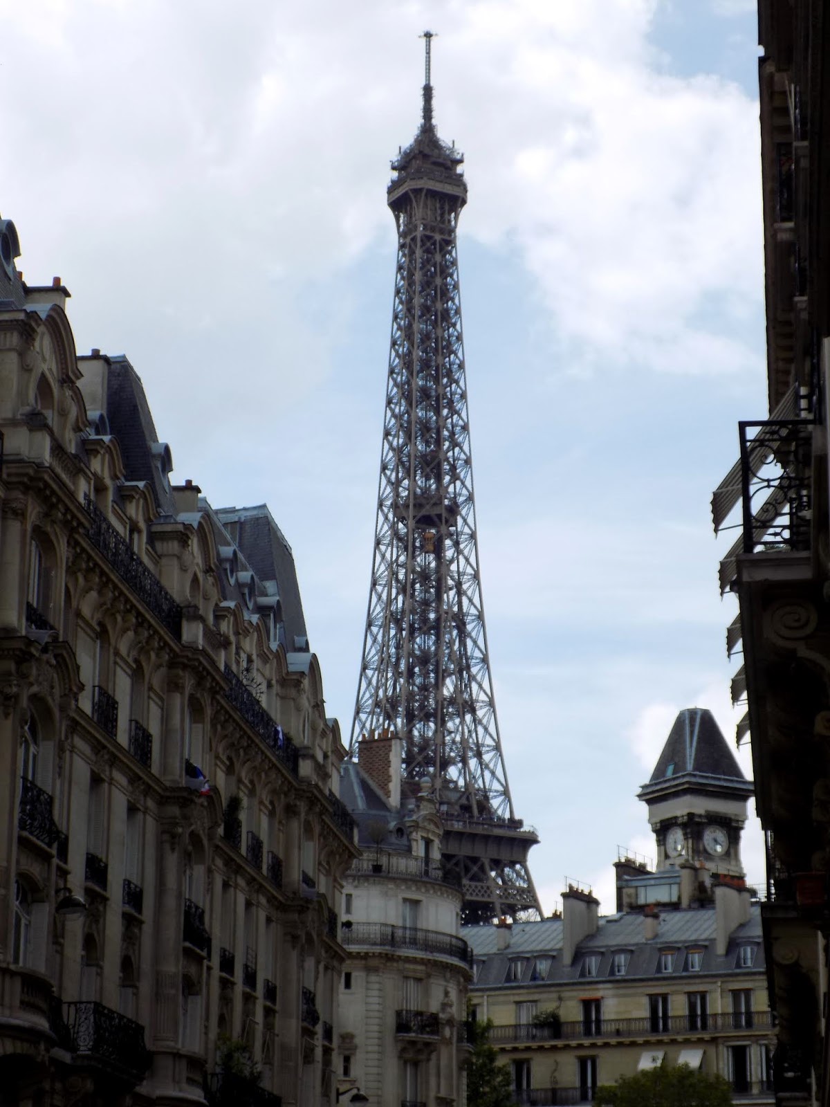 A jdeme dál! Na levé straně od této budovy jde vidět špička Eiffelovy věže! Hurá! Už teď pro mě byla krásná a velká a zajímavá a .. a .. a .. a už teď mi vyrazila dech. Nedočkavě procházím další uličky a koukám směrem, kde na mě vykoukla. Raz, dva, tři, vyjdu z poza rohu a najednou bum! Vidím ji na vlastní oči, ale pořád z dálky. Nemáte ponětí, jaká radost ve mně kolovala. Tolik emocí a pocitů, které jsem sbírala 7 let, jsem najednou měla před očima. Tak honem, jdeme blíž!