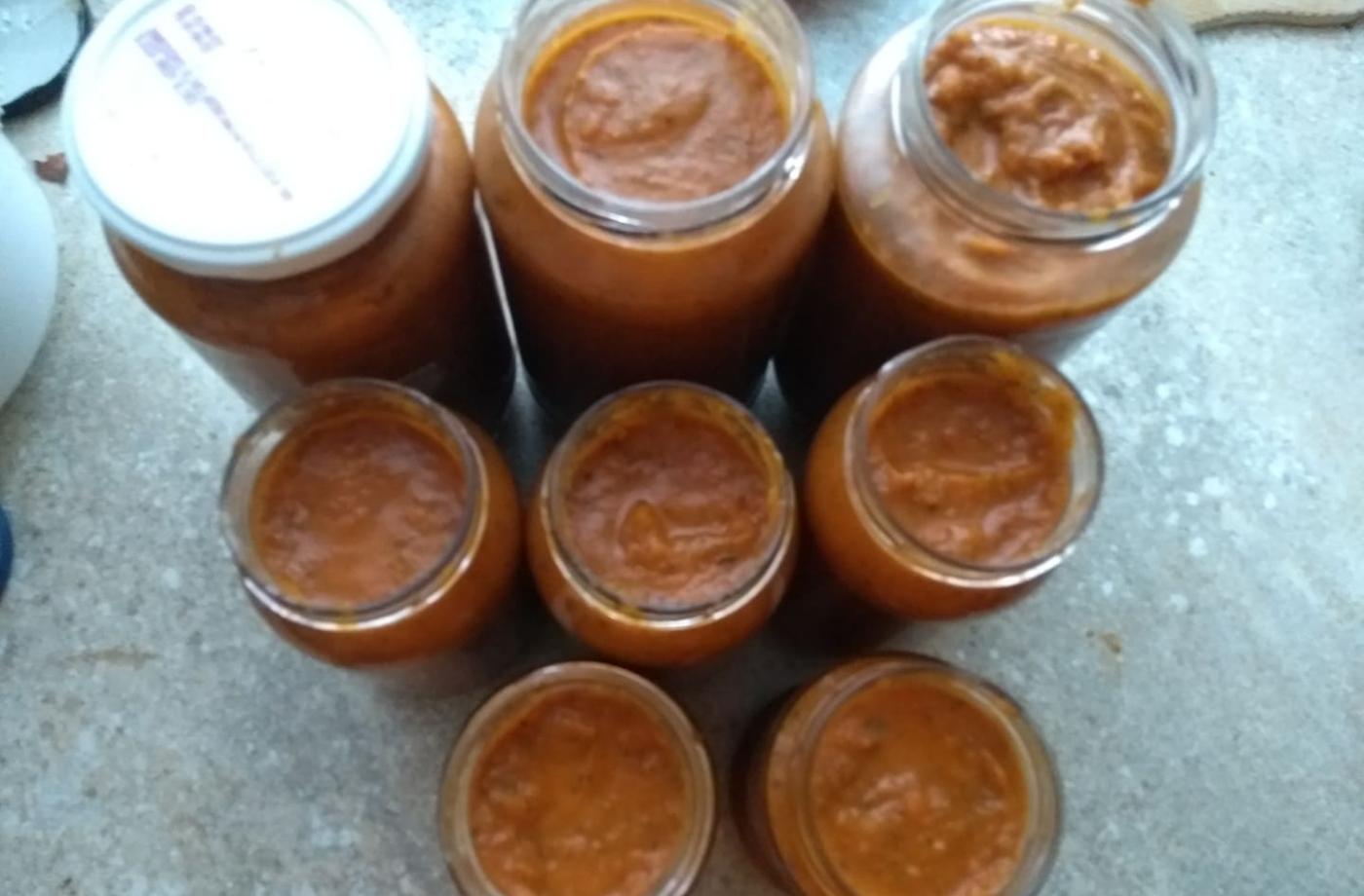 - Pridáme rajčiny, 1 dcl vody a varime za obcasneho miesania cca 30 min. Pridame kus masla (ked zavarate tak olivovy olej), med, sol, za hrst bazalky a rozmixujeme do uplneho hladka.