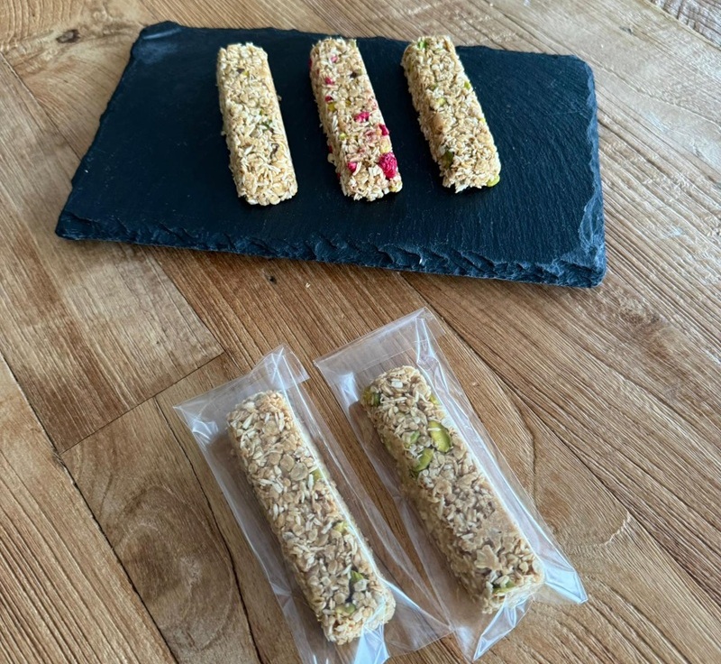 - Ingredience dle příchutě tyčinek například bílá čokoláda a lyofilizované maliny, pistácie nebo kakao, hořká čokoláda a protein.