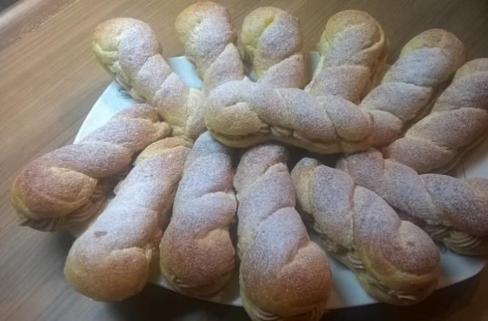 - Utřeme máslo s cukrem a po částech přidáváme puding.