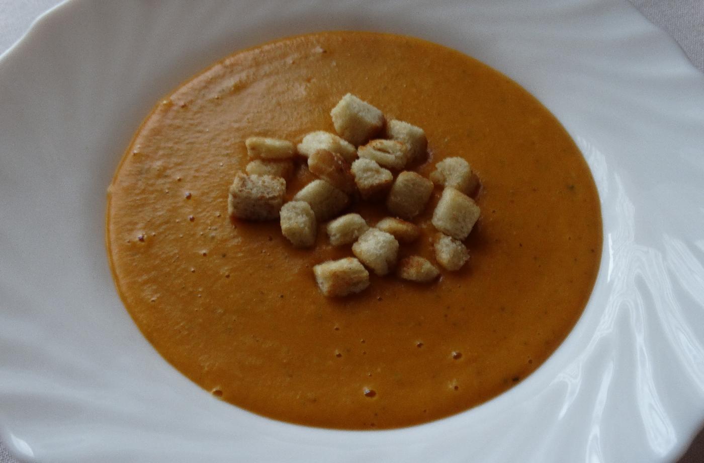 Podáváme s domácími krutonky, můžeme posypat zelenými bylinkami, dle toho, co zrovna má člověk doma.