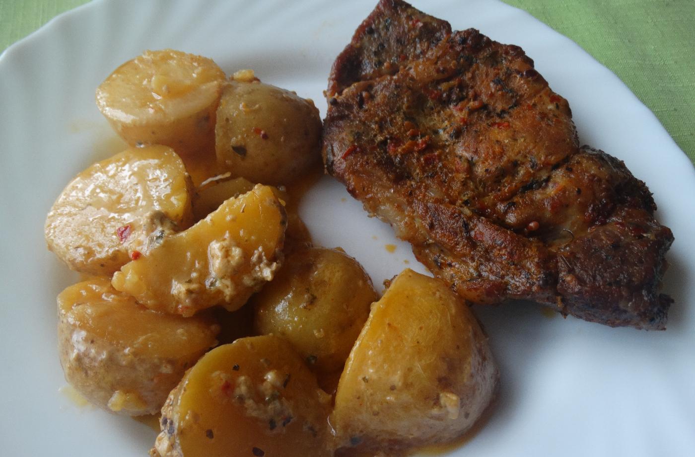 Zemiaky a cuketu nakrájame na plátky. Do pekáča uložíme polovicu zemiakov, jemne osolíme, pokladieme plátky cukety, šunku, balkánsky syr...