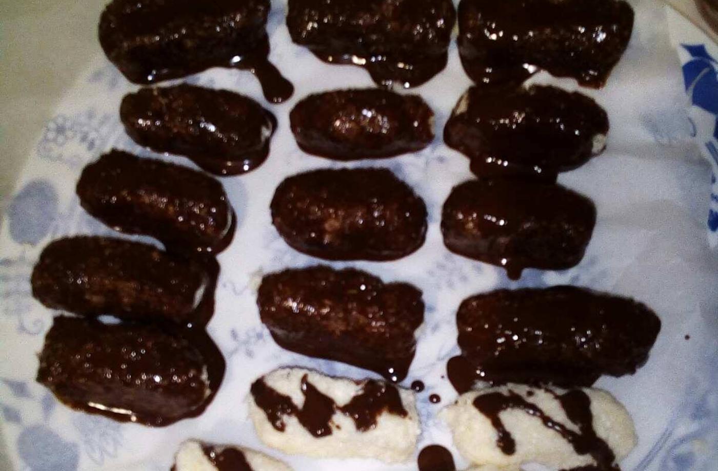 Banánovo-piškotové jednohubky 1 balení Dětské piškoty3 ks Zralé banány2 ks Čokoláda na vaření3 lžičky Tuk omega Strouhaný kokos či...