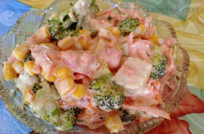 nakrajame sunku na drobno, uvarene vajicka nastruhame, nastruhame jablcko a pridame ananas z konzervy alebo cerstvy a kukuricku z...