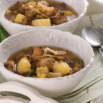 - Na sádle opečeme na silnější kolečka pokrájenou cibuli, zalijeme vývarem a chvíli povaříme, aby změkla. Polévku opepříme, případně podle chuti ještě dosolíme. Do ohnivzdorných misek rozdělíme porce chleba, který jsme nakrájeli na kostičky a osmažili na sádle. Posypeme ho na malé kousky nakrájenými tvarůžky, zalijeme polévkou, a to všechno v předehřáté troubě prudce zapečeme.