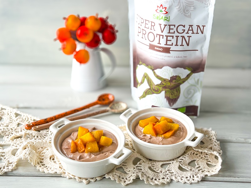 - Kaki nakrájejte na kostičky a duste v rendlíku pod pokličkou do mírného změknutí. Stačí pár minut. Ve větší misce metličkou do hladka promíchejte Skyr s jogurtem. Přidejte Super vegan kakaový protein a med. Směs rozdělte do dvou misek, ozdobte podušeným kaki a dle chuti poprašte skořicí.