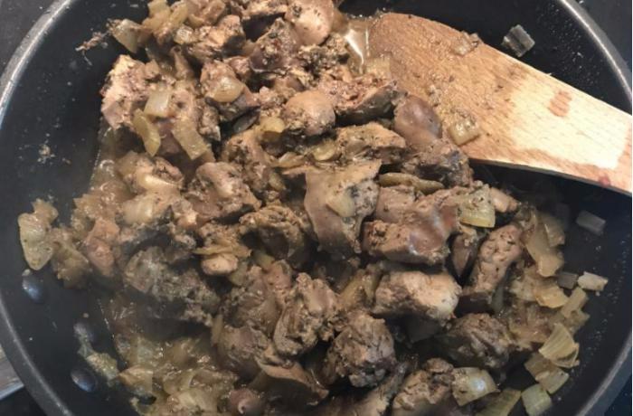- Nejprve si očistíme, odblaníme a nakrájíme játra - 1 balíček, přibližně 500g. Pote nakrájíme nahrubo 2 cibule, které necháme na oleji zezlátnout. Přidáme játra, cca 100ml vody na podliti a kořeni. Přikryjeme a necháme dusit 15-20 minut. Průběžně kontrolujeme. Podáváme s rýží 🙂 Dobrou chuť!
