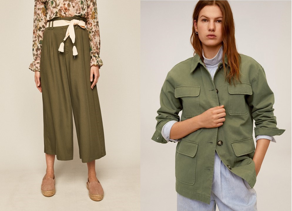 1. Kalhoty Boho Breeze, 549 Kč, Answear; 2. Zelená lehká bunda s kapsami Mango Margot, 1039 Kč, Zoot