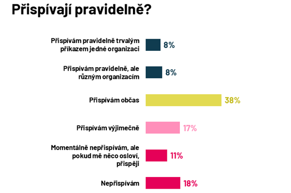 Přibližně polovina Čechů přispívá dle dostupných dat na dobročinné účely. Ovšem na rozdíl od jiných evropských zemí, kde si lidé zpravidla zvolí pro pravidelnou podporu určitou organizaci, v Česku přispíváme především nárazově. I to je důvodem, proč se neziskové organizace rozhodly oslovovat nově dárce přímo v ulicích.