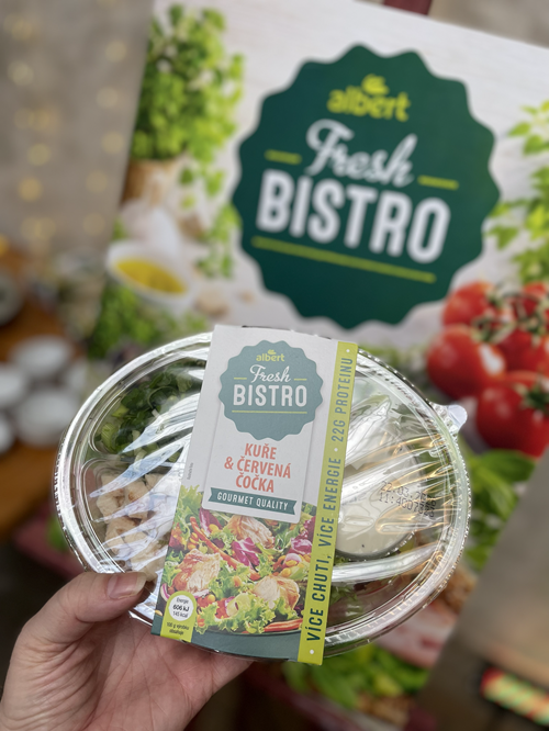 Nechcete ztrácet čas domácí přípravou a zdlouhavě krájet všechnu potřebnou zeleninu a další ingredience? Nabídka Fresh Bistro od Alberta přináší hotové chutné salátové kombinace inspirované moderní bistro kuchyní. Milovníci mořských plodů mohou ocenit salát s krevetami, zeleninou a drobnými těstovinami orzo. Ti, kdo fandí luštěninám, si zase pochutnají na salátu, který nabízí kombinaci kuřecího masa, zeleniny a červené čočky.