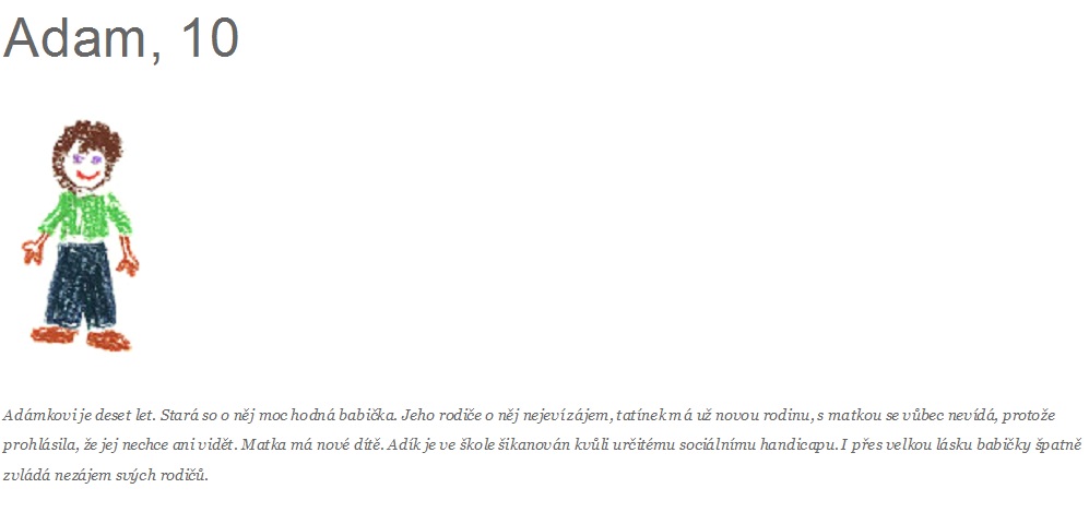 I vy můžete udělat radost dětem i jen tím, že jim přispějete na jejich oblíbený kroužek, na pastelky, na výtvarný kurz a nebo… víte co, podívejte se na příběhy dětí a jejich přání sami. K tomu jsou určeny stránky jezisek.zajiceknakoni.cz , kde jsou uvedeny příběhy dětí a jak jim pomoci. Projekt se  snaží vždy pomáhat především samotným dětem, aby pomoc byla opravdu pro ně a nebyla nijak zneužita. Peníze se nedávají rodičům, ale rovnou se za ně nakoupí to potřebné pro dítě.
